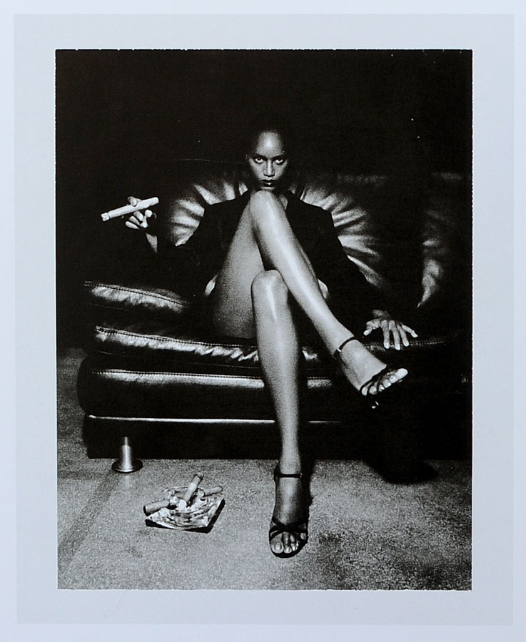 Ojo, cuando estés mirando este libro piensa siempre que son polaroids, es decir, las fotos que hacía Helmut Newton de prueba para la foto “buena”. Porque cuesta acordarse de ese “pequeño” detalle. Lo digo porque uno se embelesa con las fotos y con que es el gran Newton y claro, a veces cuesta creer que lo que ve es una prueba, pero sí señor, para eso servían las polaroids cuando la fotografía digital todavía ni siquiera se había imaginado: ¡Para probar!